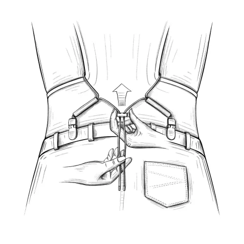 fest an die Hüfte bis diese nicht mehr rutscht aber das zwickt und stört